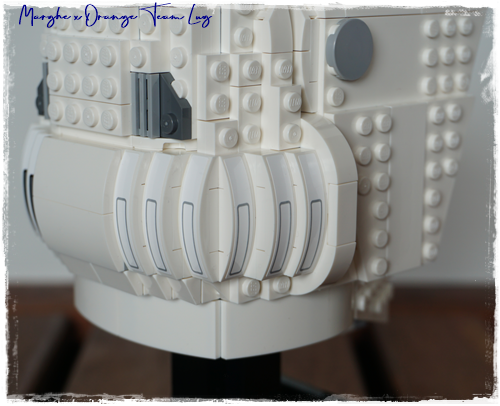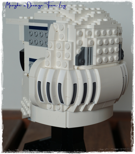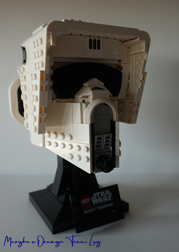 Ricreare la complessa curvatura e sagomatura dei vari caschi è abbastanza difficile quando si utilizzano pezzi LEGO® che sono tutto tranne che adatti alle curve in spazi ristretti, ma il casco Scout Trooper è sufficientemente spigoloso tanto da reggere il confronto con l'originale piuttosto favorevolmente.
