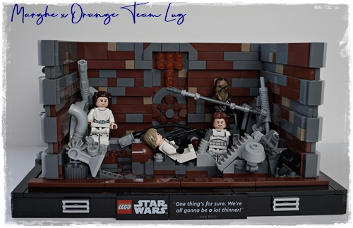 Questa la scena che ci riporta il SET LEGO® STAR WARS™ 75339 DEATH STAR™ TRASH COMPACTOR DIORAMA, quando all'interno del compattatore i nostri protagonisti si stanno dando da fare per trovare una via d'uscita.