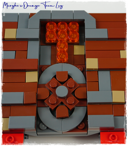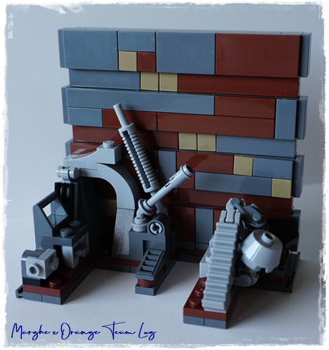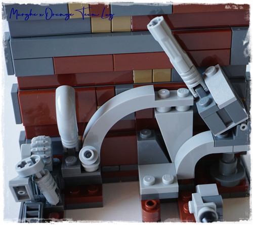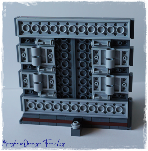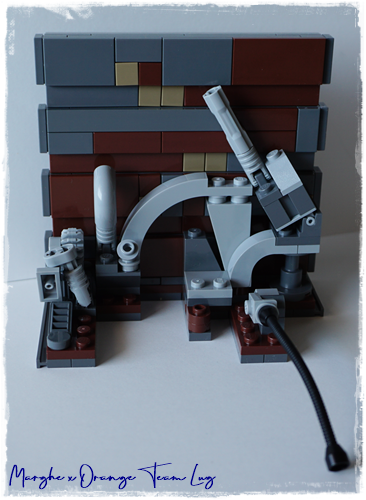 La parete posteriore del compattatore è liscia con chiaro scuri che rendono lo sporco e la ruggine; al centro la porta di uscita sigillata, dietro cui troveremo l'Easter Egg del set.