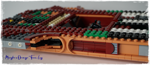 I modelli del75341 LUKE LANDSPEEDER 18la serie Ultimate Collector Series e i veicoli su larga scala sono generalmente assemblati con strutture Technic, in questo caso invece si lavora con strati di plate e mattoncini dai mille colori fino a formare un corpo solido.