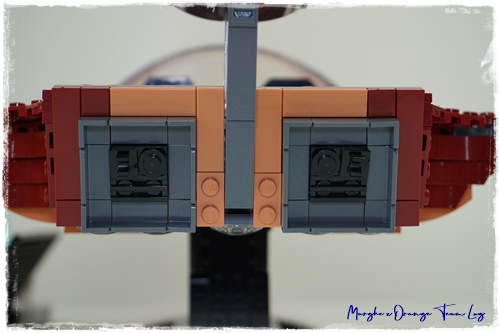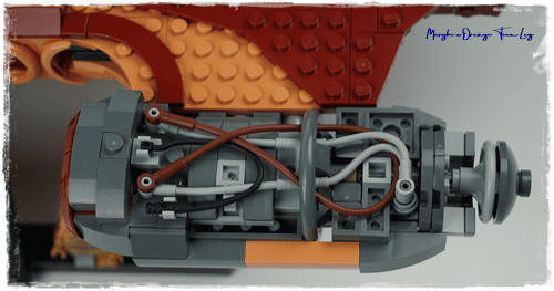 I tre motori hanno una costruzione diversa uno dall'altro, abbastanza complessi rispetto al resto del modello da rendere la costru75341 LUKE LANDSPEEDER 25zione piuttosto interessante; mentre uno dei motori laterali e quello in alto sono molto simili e variano sostanzialmente nella parte dell'attacco, diverso il montaggio del motore "aperto".