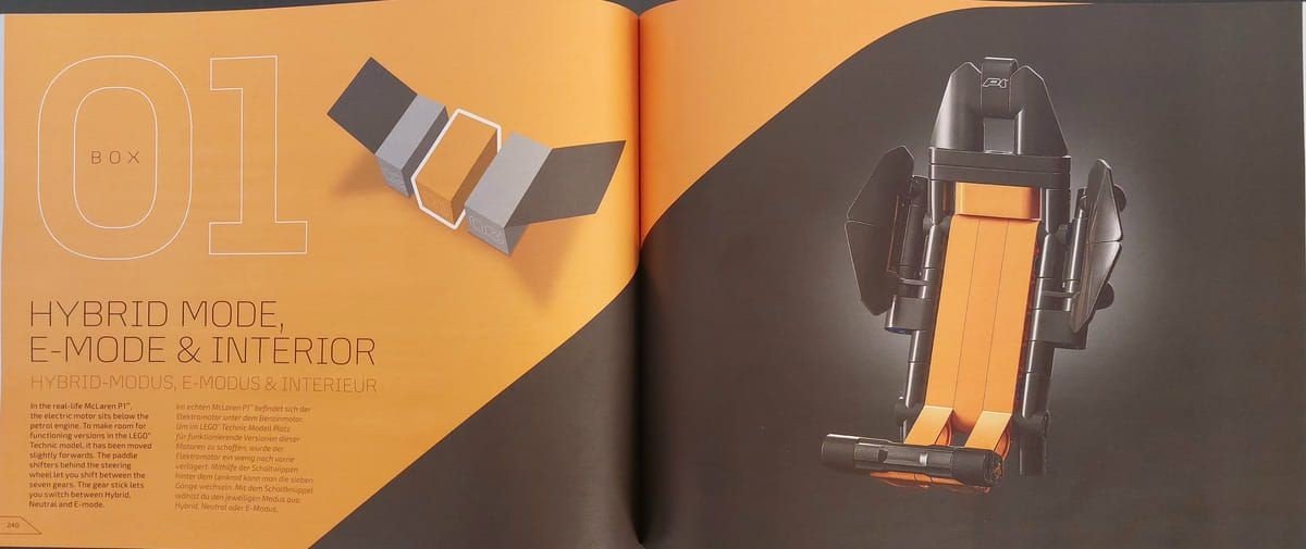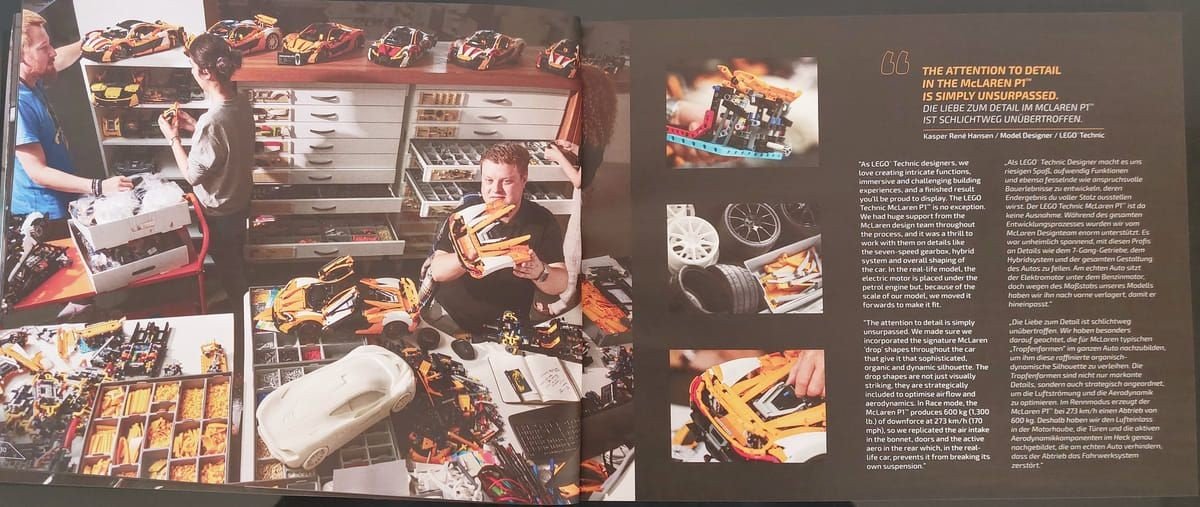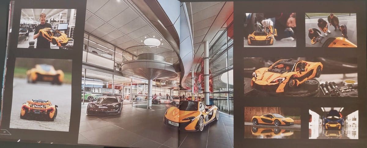 Rimosse le 3 scatole troviamo i 2 manuali con raffigurato l'auto vista lateralmente. Nel manuale n.1 le prime pagine sono dedicate oltre alla storia della McLaren e della P1 anche alla collaborazione tra le 2 aziende con alcune foto che raffigurano le fasi di progettazione del set, sotto potete vederne alcune.
