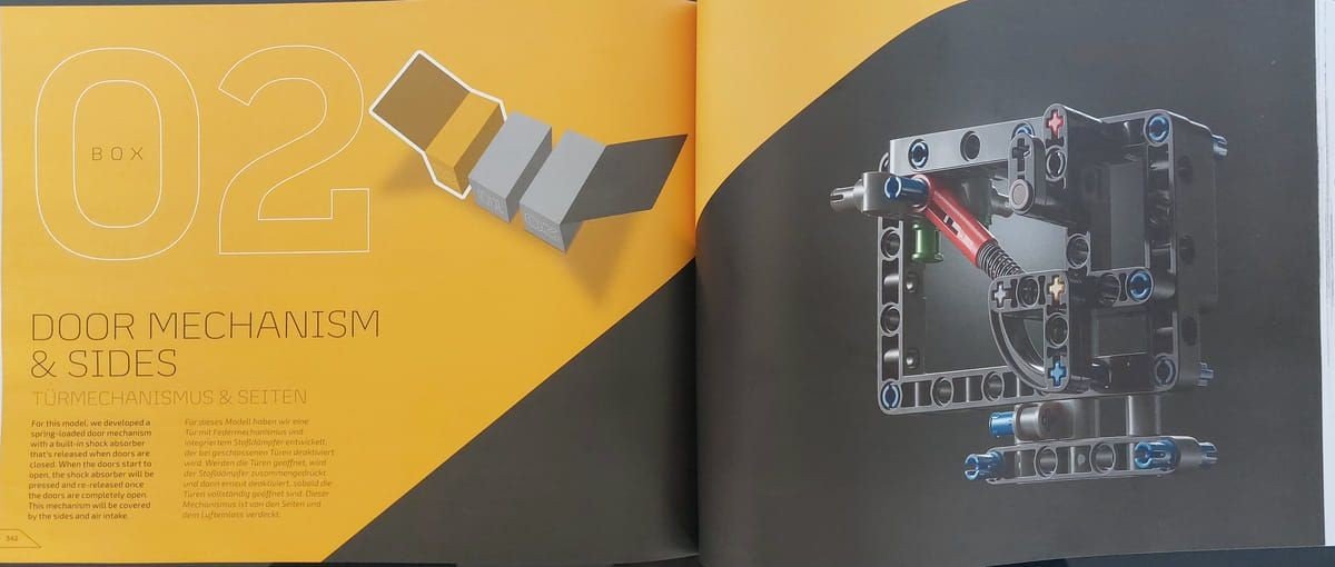Con l'ultima scatola andremo a montare come prima cosa le porte, che hanno un sistema di apertura detto a farfalla e poi tutta la parte posteriore della carrozzeria che comprende la copertura del motore, i caratteristici fari e lo spoiler posteriore che è possibile alzare e abbassare tramite un piccolo ingranaggio posto sulla parte bassa del retro del veicolo, oltre ovviamente a posizionare anche i cerchi e ruote.