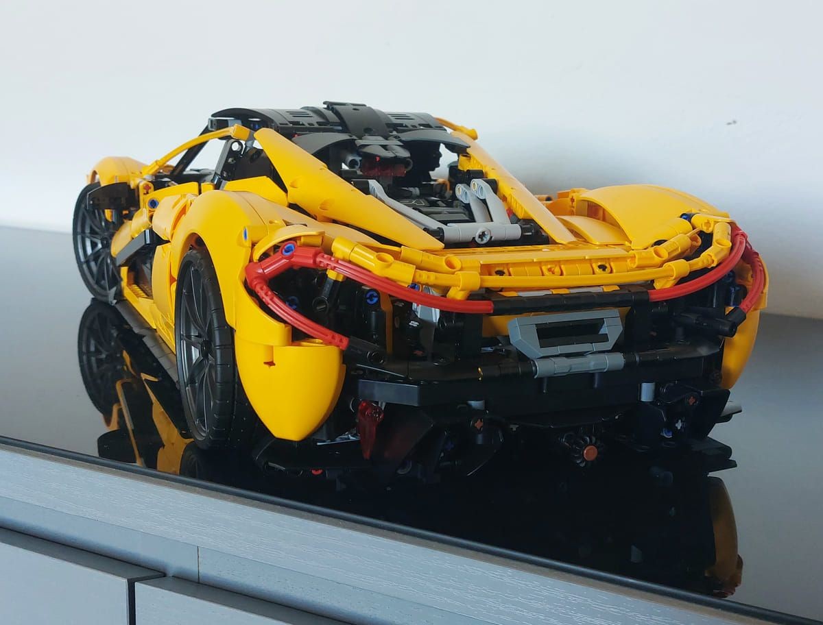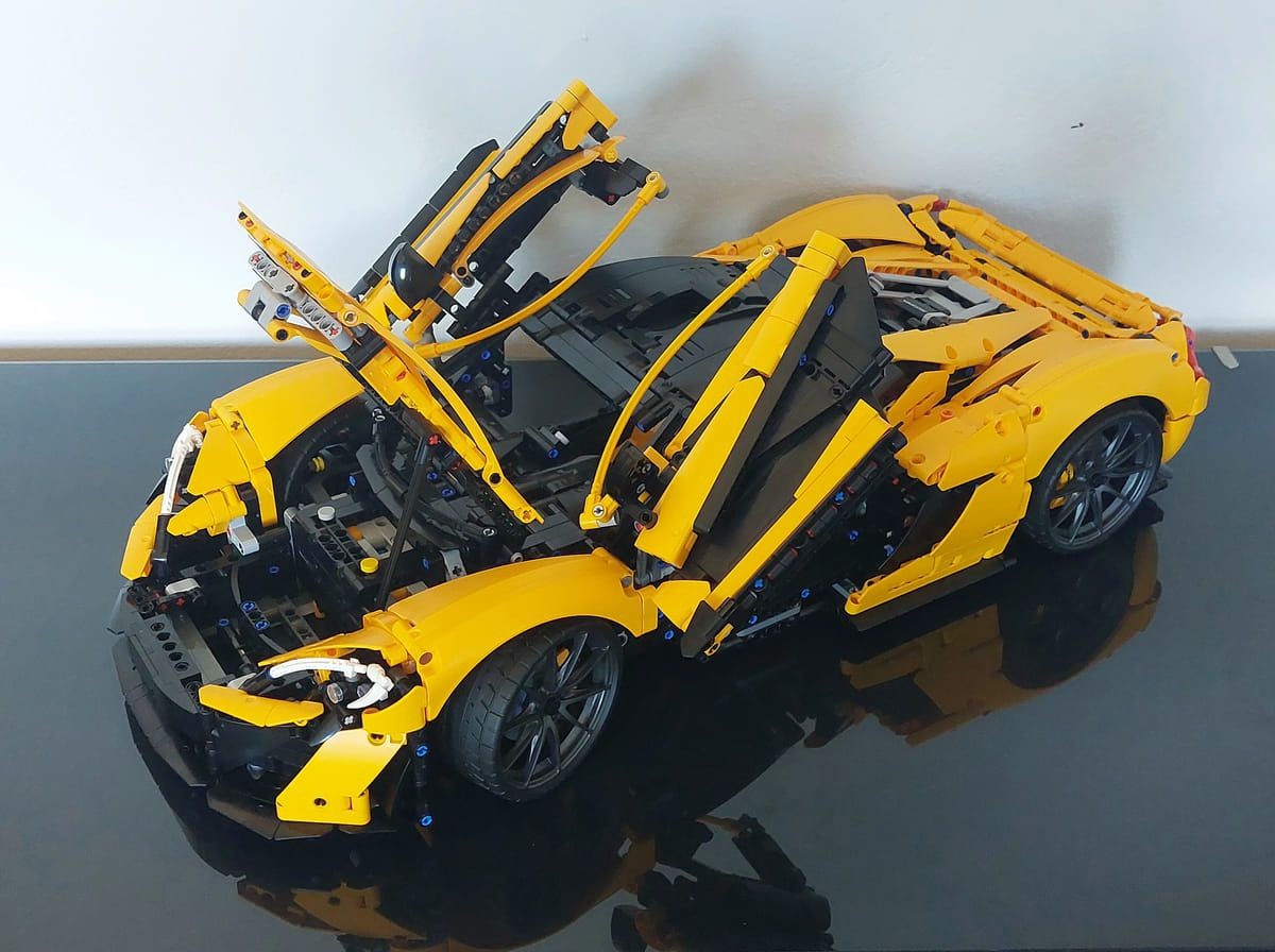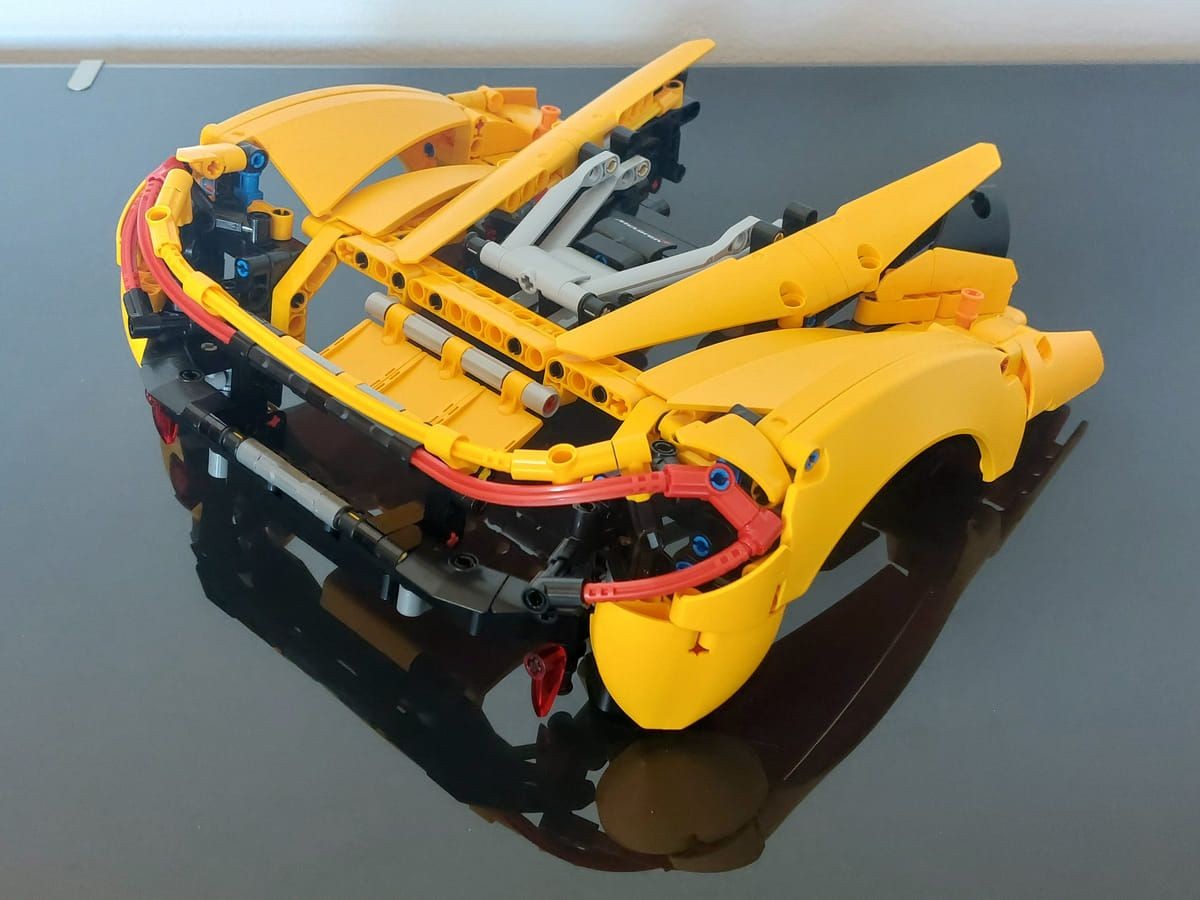Questo è il quinto modello della serie dedicata alle super car e se avete la fortuna di avere le precedenti potrete vedere la cura nei dettagli presenti in questo. Il set è davvero ben riuscito, il colore Volcano Yellow è ben rappresentato, però non è solo bello da vedere ma è stato bello da montare; interessante il meccanismo di apertura delle porte e l'elemento che va a coprire la parte posteriore dell'auto, che è possibile rimuovere per mostrare il motore e il cambio. Grazie ad alcuni elementi già visti nel set precedente, la Ferrari Daytona SP3, è stato possibile realizzare le linee morbide della P1. Unico neo, ma il set non è pensato per il gioco ma per essere esposto, è l'apertura a farfalla delle porte; queste vanno accompagnate in quanto il Soft Hose che ricrea la parte curva della portiera si incastra con il Panel del tetto e anche in fase di chiusura va riallineata nel suo alloggio, ma appunto è un difetto molto trascurabile. Inizialmente ero dubbioso sulla scelta da parte di Lego® sul modello dell'auto: come avete letto la P1 è uscita di produzione del 2015 e tante altre auto sono state prodotte nel frattempo dalla casa, ultima ad esempio la W1 che è la diretta erede ma, leggendo poi la storia presente sul manuale, la P1 è stata la prima super car ibrida, credo quindi che la scelta sia stata proprio rendere omaggio a questo modello innovativo, a mio avviso ci sono riusciti egregiamente.