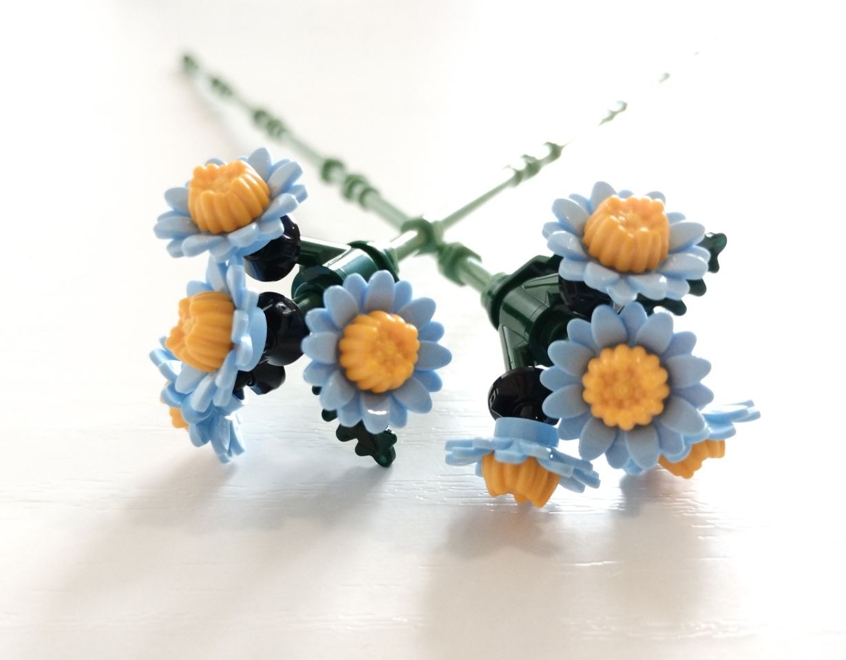 Inoltre non guasta affatto che ci siano più copie di uno stesso fiore, per cui potete sia tenere tutto il bouquet intero così come è stato pensato, oppure, come ho fatto io, tenere solo alcuni fiori singoli da aggiungere alla vostra personale composizione di set Botanicals e fare "part-out" di alcuni altri… si sa che chi costruisce è sempre alla ricerca di pezzi nuovi da provare, fiori, foglie e vegetazione per le proprie MOC…