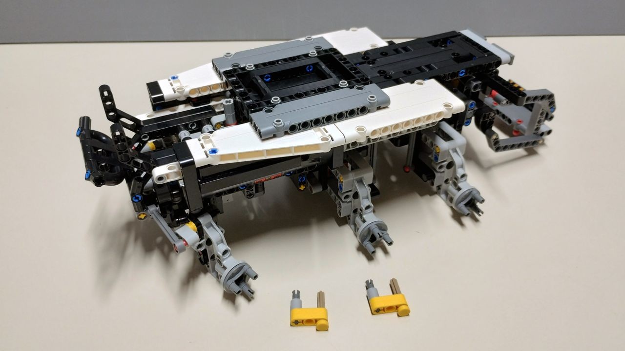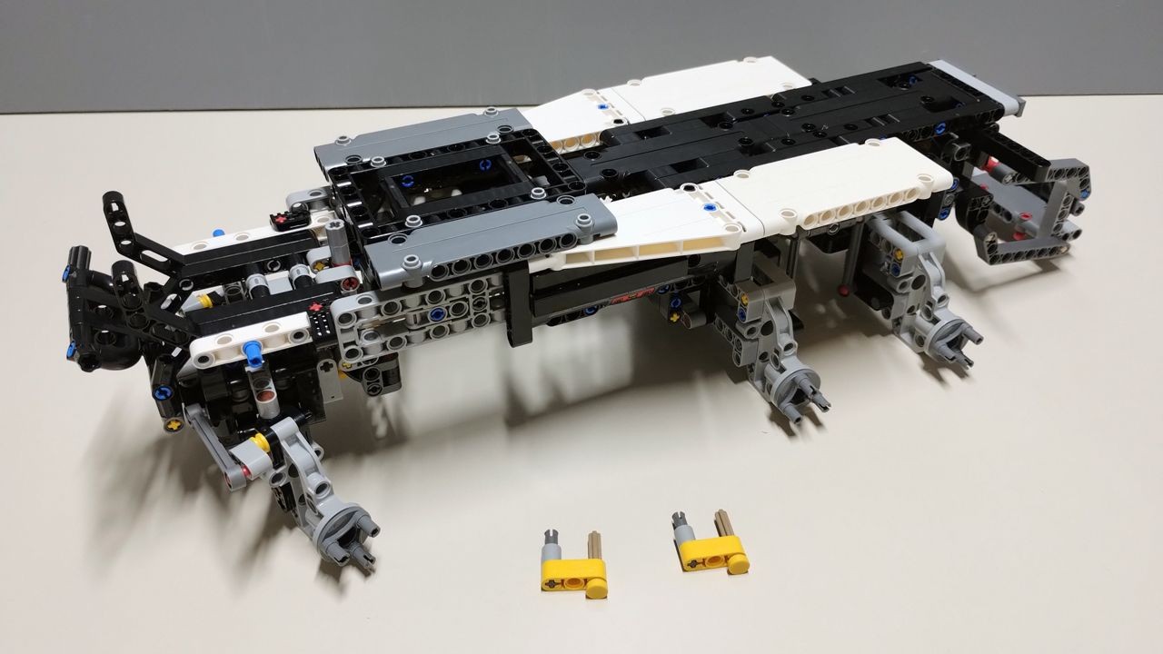 Con le buste 1 e 2 si realizzano gli assi posteriori delle ruote, oscillanti, che si muovono in modo coordinato alzandosi ed abbassandosi in contrapposizione attraverso l'uso di quattro pezzi "Link 1 x 6 without Stoppers" (codice 32005). Gli assi non sono ammortizzati. Nella stessa fase si costruisce anche il carrello elevatore posteriore.
