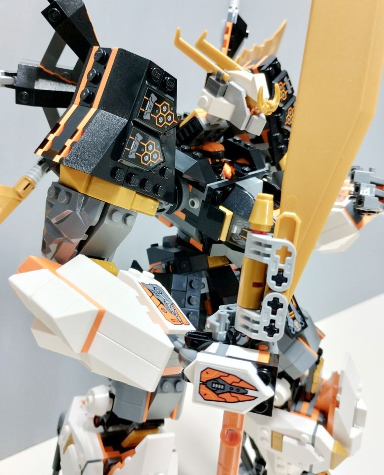 Il set 71821 è contemporaneamente il mech in produzione con il più alto prezzo di listino ed il maggior numero di pezzi (1055) oltre ad essere il più alto e snodabile tra i mech prodotti fin ora, con ben 45 cm di altezza totali del mech finito e circa una ventina di articolazioni disseminate lungo tutto il modello che permettono un enorme varietà di pose. E' il primo mech ad avere un'articolazione del ginocchio completa, ha 4 pistoni sul retro della caviglia per garantire la stabilità dei piedi indipendentemente dalla posa che daremo al modello e ben 5 technic rotation joint con doppio pin per tenere ben salde le articolazioni di spalle, bacino e gambe.