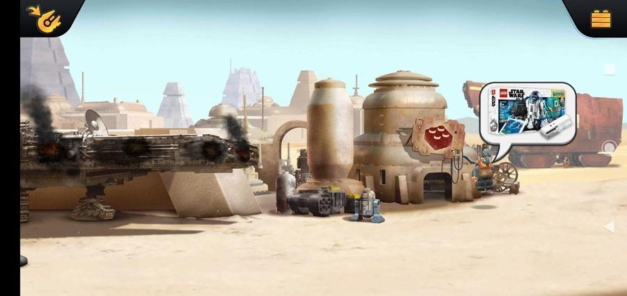 L'App si apre con un Millennium Falcon che arriva sul pianeta Tatooine, mentre la costruzione e l'apprendimento della programmazione si svolgono attraverso l'interazione con il rigattiere Watto.