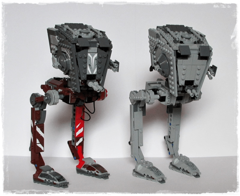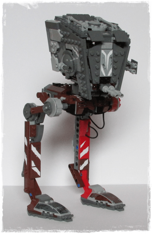 Questa è la seconda versione del Camminatore bipede - il primo fu il set 75153 del 2016 - la costruzione condivide alcune tecniche di costruzione rendendoli simili, ma invece del classico grigio chiaro/scuro qui troviamo colori decisamente più da mezzo "rattoppato" come deve giustamente essere, visto che il mezzo dell'Impero Galattico è stato recuperato dai Predatori Klatooinian. Rispetto al suo predecessore, la base del corpo è basato su una plate 6x8, che da maggiore spazio costruttivo e permette una finitura migliore della parte posteriore, lasciando lo spazio per esempio ai manici dei rulli da pittore per evidenziare i meccanismi. Anche se la struttura di base è uguale, i dettagli migliorati e la colorazione danno un aspetto più "rusty" ad un camminatore bipede che fa sempre sorridere con i suoi movimenti forse un po' "gallinacei".