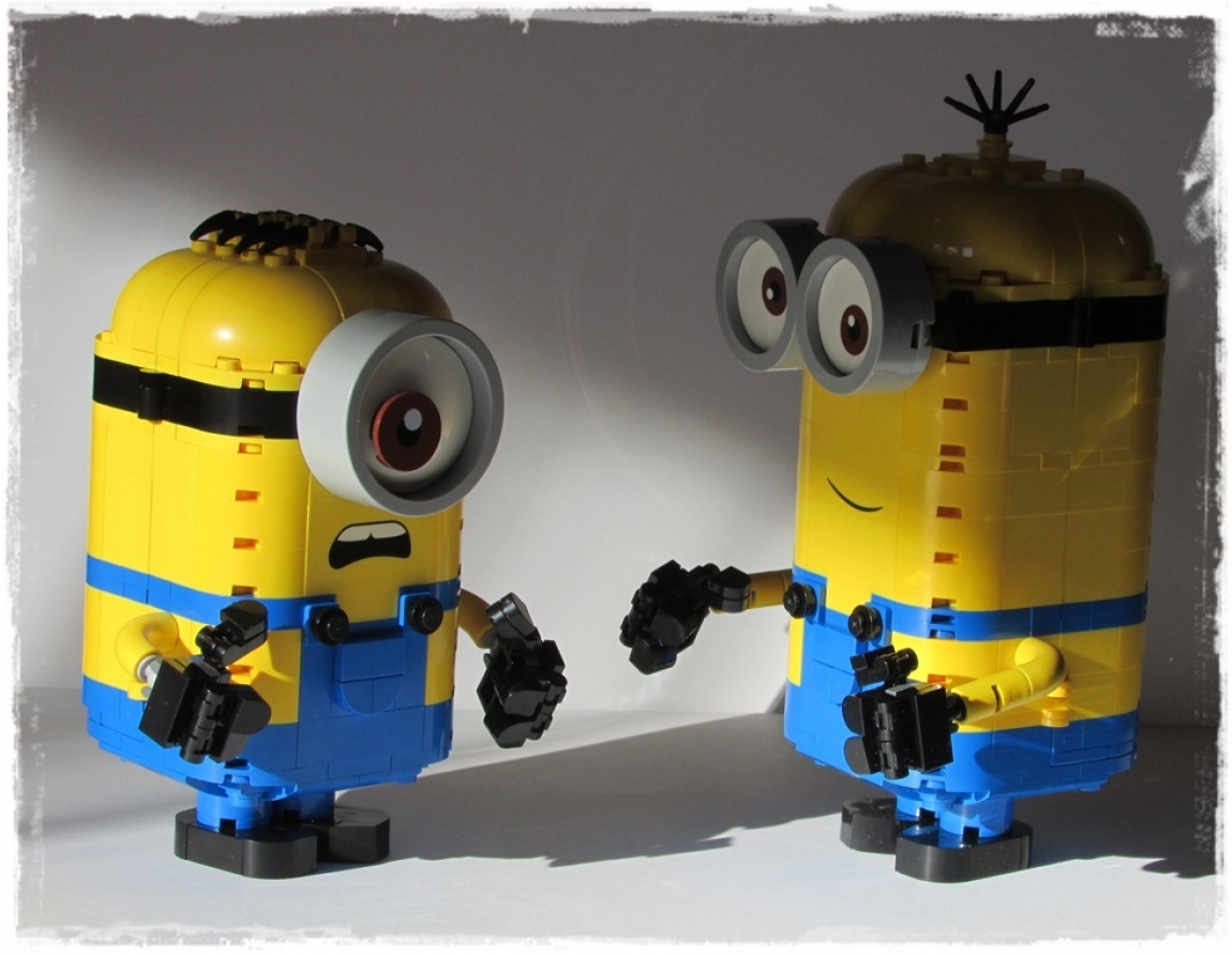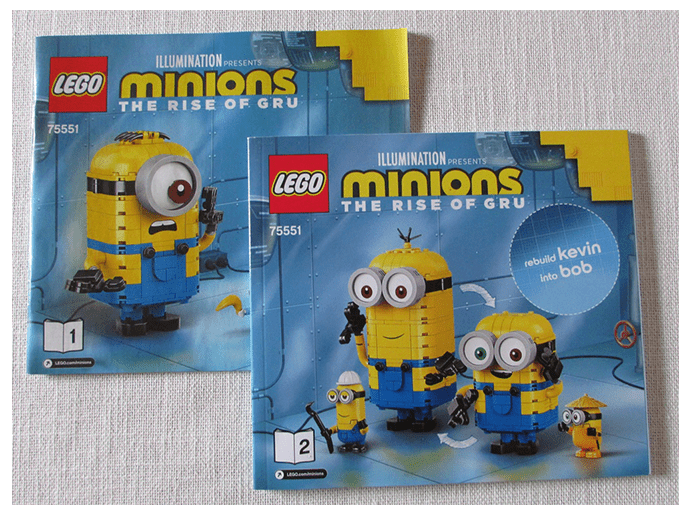 Le istruzioni, in versione passo passo con la parte da costruire contornata in rosso, sono suddivise in due libretti: uno per Stuart e un secondo 2 in 1 dove scegliere se costruire Kevin o Bob.