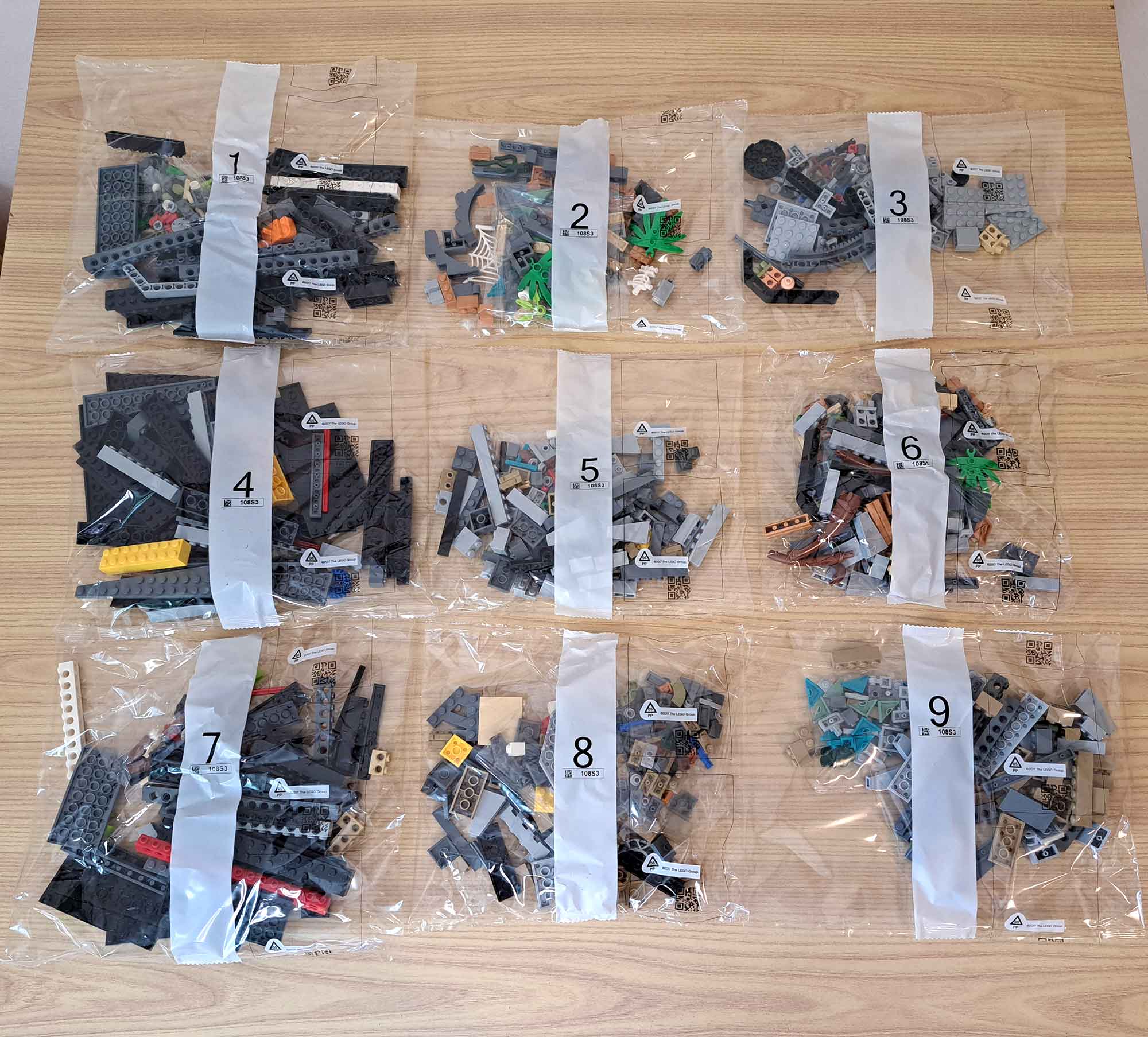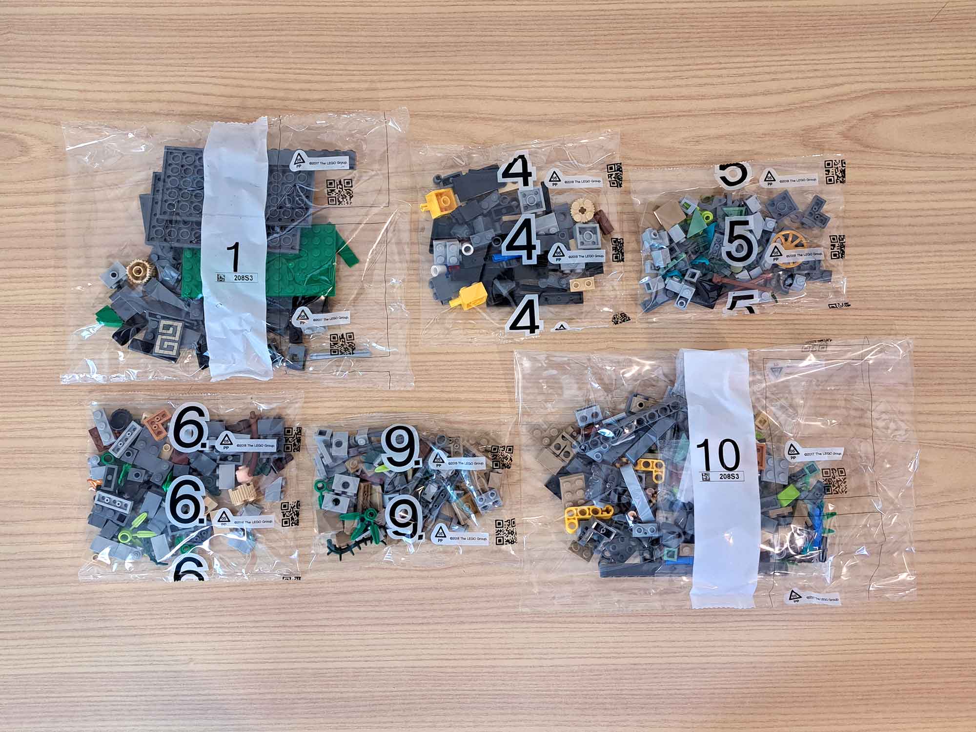 Iniziamo aprendo la busta numero 1, anzi le buste numero 1. Nel libretto non è specificato, ma quelle coi numeri uguali vanno aperte insieme. Viene indicato invece che le buste da 1 a 3 riguardano la costruzione del primo dei 3 segmenti del set/tempio. Quelle dal 4 al 6 il secondo e quelle dal 7 al 10 il terzo.