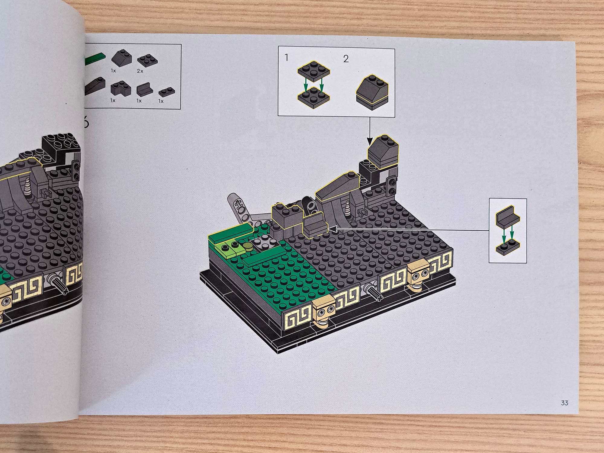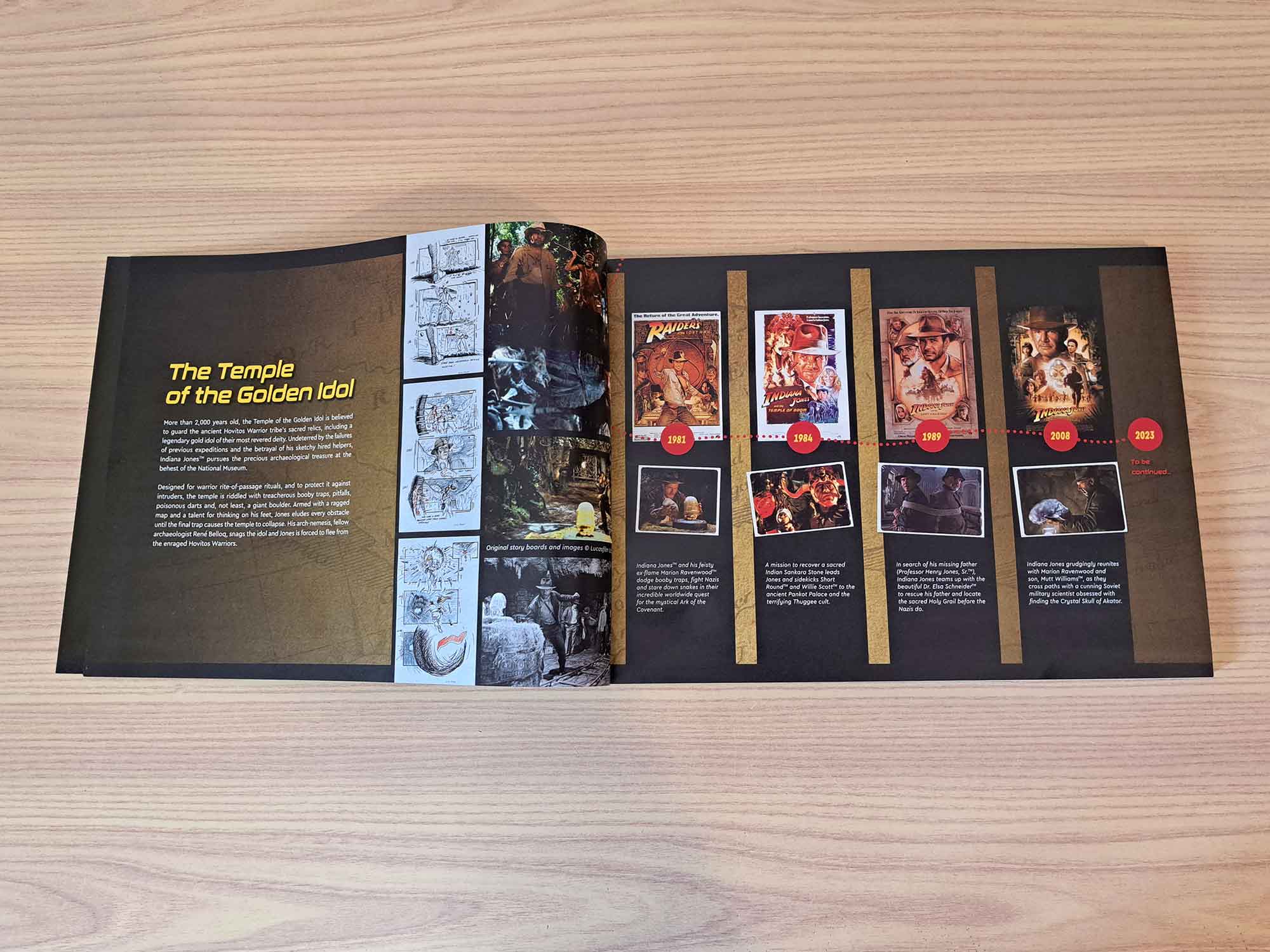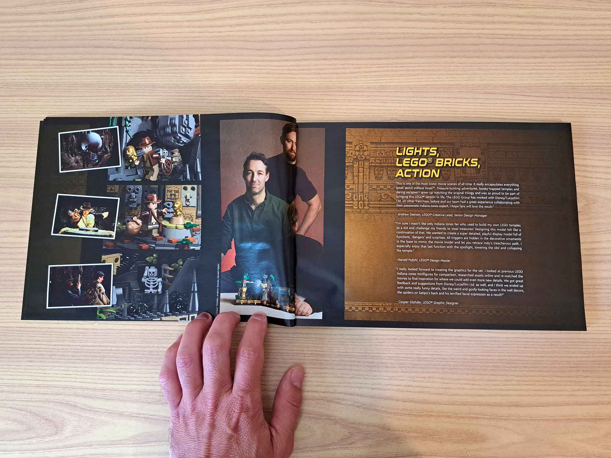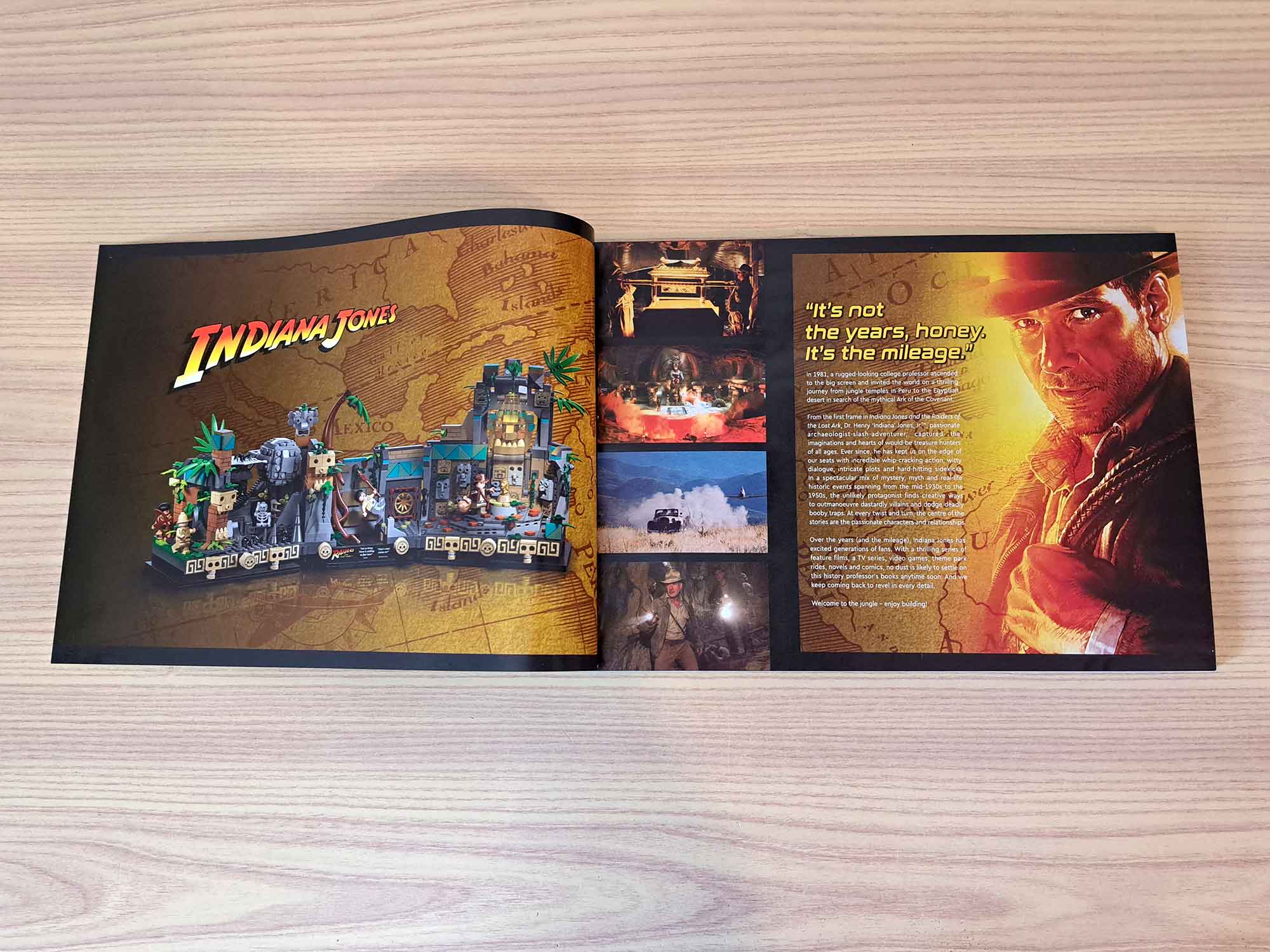 Nelle istruzioni, un bel volume di 284 pagine, abbiamo una parte introduttiva con testo, scene e locandine della saga, poi nello specifico immagini del tempio dell’Idolo d’oro e infine una breve presentazione da parte dei designer realizzatori del set.