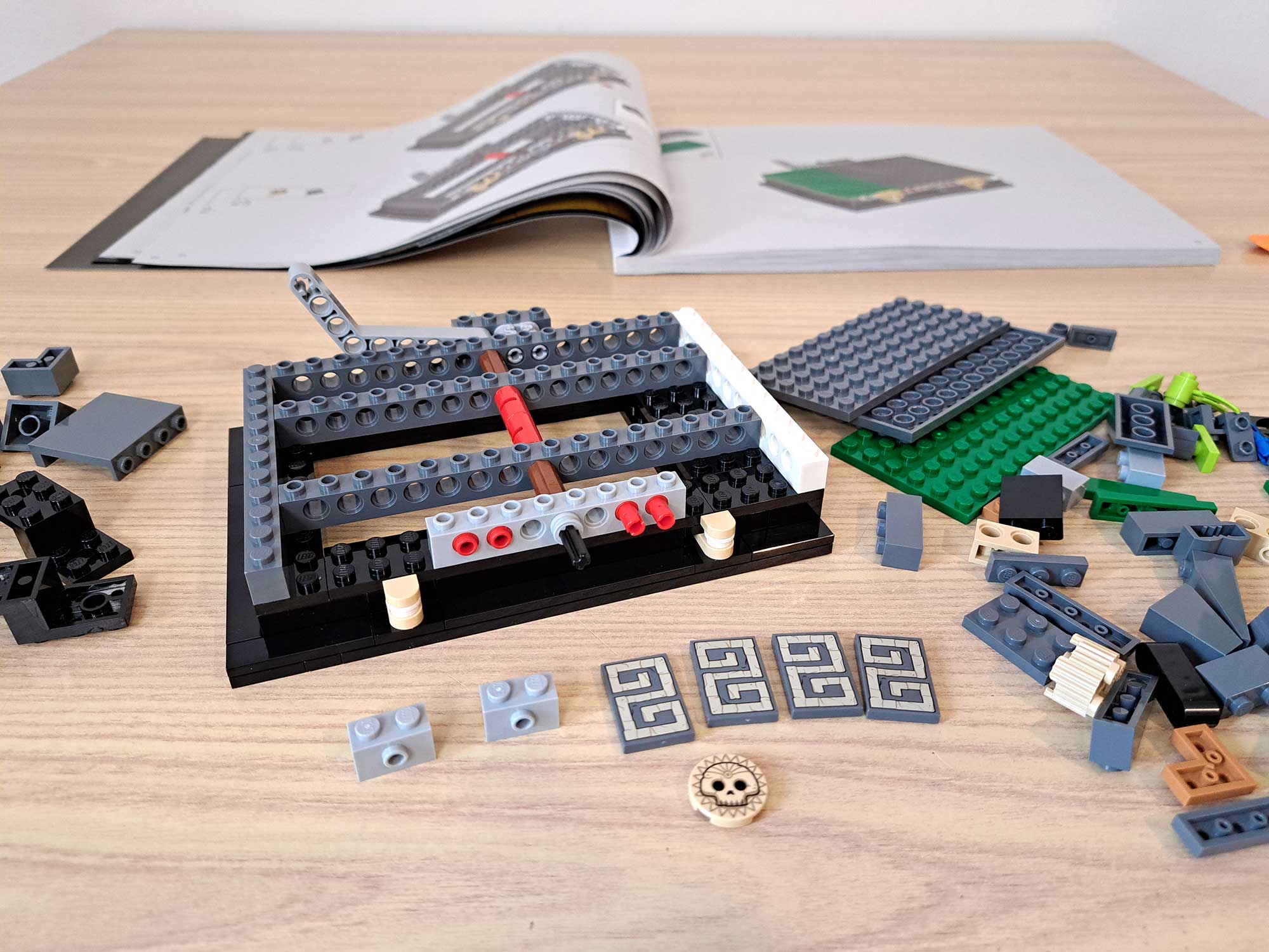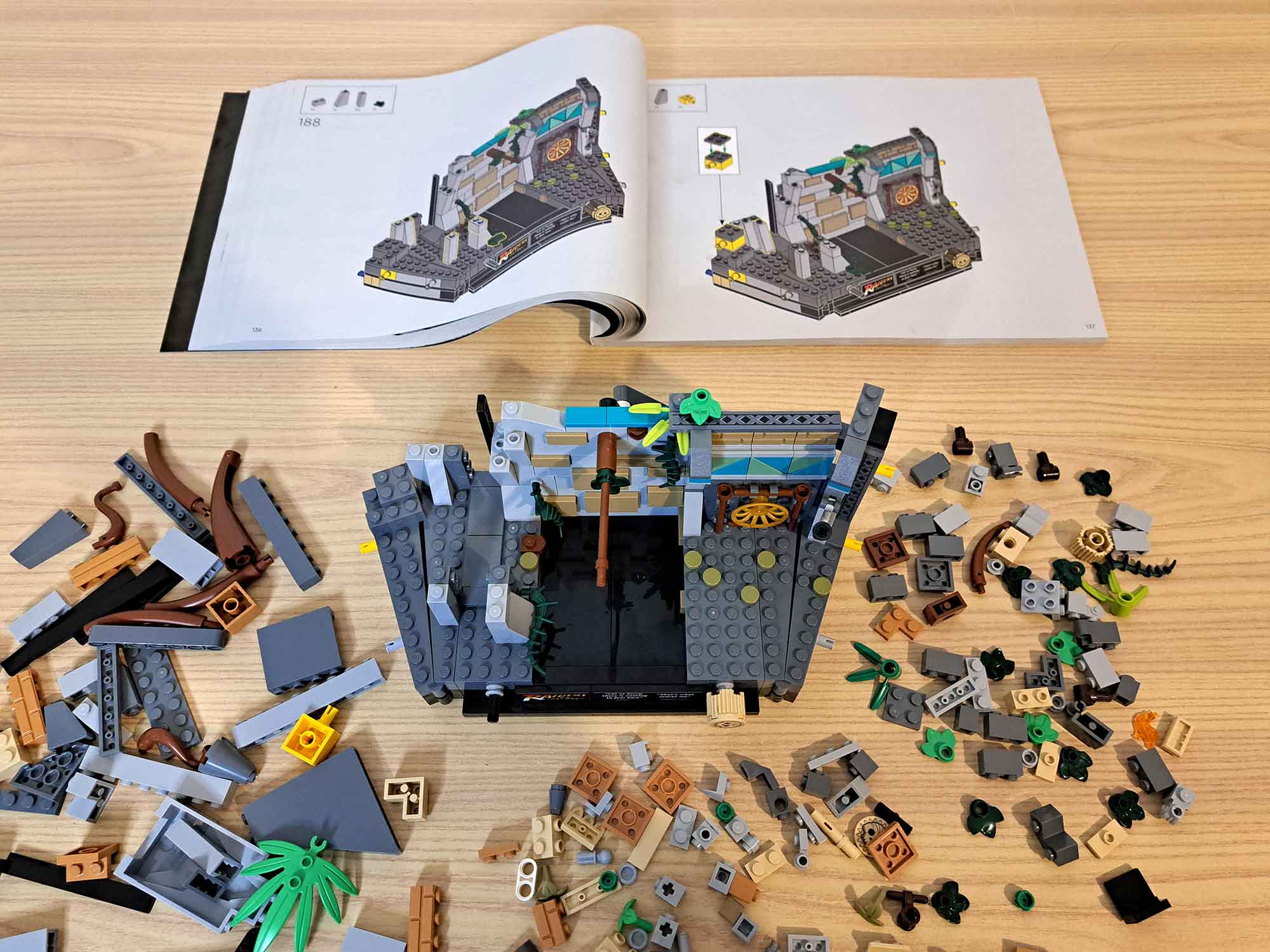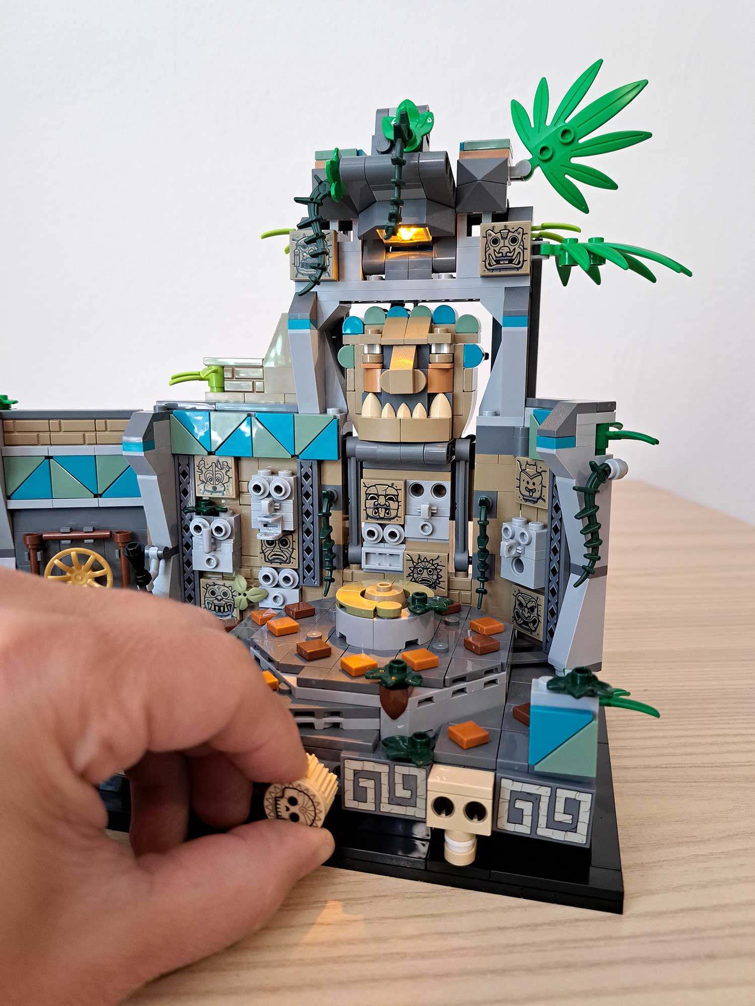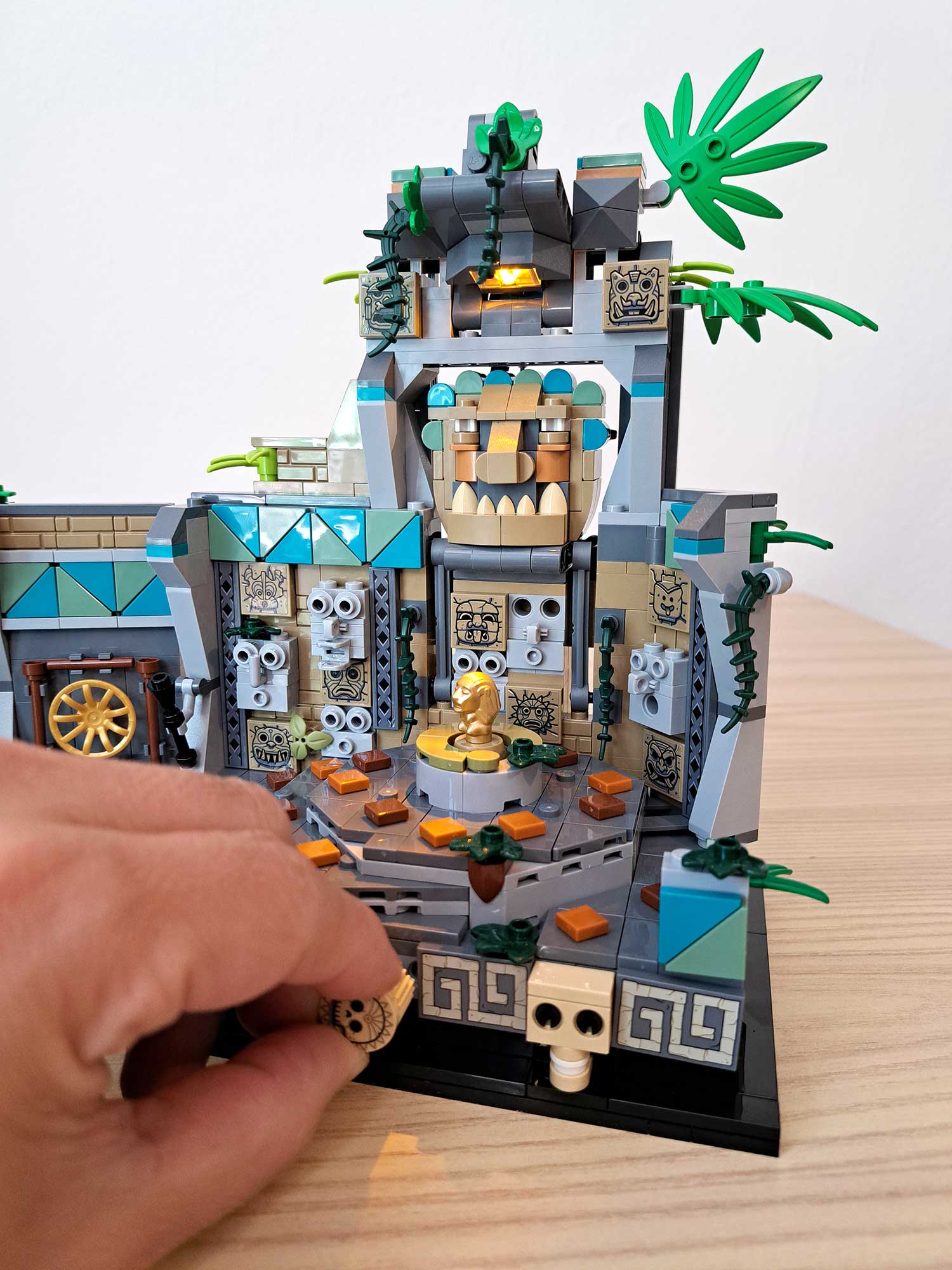 Devo dire che la costruzione, seppure non facile, è molto appagante. La parte degli ingranaggi è fatta con i pezzi technic ed è ingegnosa e quella in vista delle tre ambientazioni del tempio contiene dettagli che rendono la costruzione divertente.
