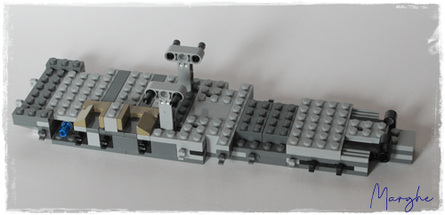 Già dalla prima busta si parte con una base solida attraverso l'utilizzo di parecchi pezzi Tecnich, sia brick che liftarm, solidità che permetterà di avere alla fine una stiva molto ampia e un set completamente apribile.
