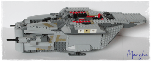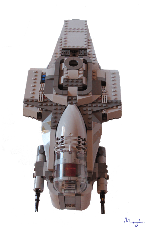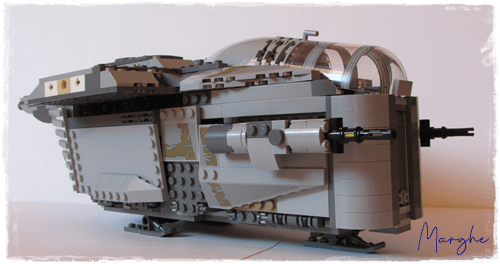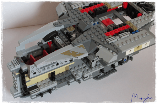 Nella parte superiore, è stata creata una capsula di salvataggio estraibile che può contenere una minifig. Ai lati della capsula due clip permettono di attivare il meccanismo per sparare i missili rossi.