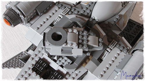 Ai lati i due motori, inseriti nel corpo centrale della cannoniera attraverso axle e pin; sono veramente notevoli, nonostante l'utilizzo di due grandi adesivi nella parte centrale, la parte di aspirazione e lo scarico dei due motori sono veramente ricchi di dettagli.