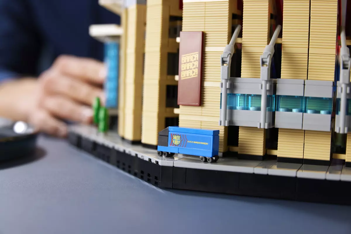 Il set riproduce nel dettaglio l’intero campo da gioco, le tribune, il tunnel dei giocatori e persino l'allenatore della squadra. Presenti anche il tabellone, che fa riferimento alla storica vittoria del Club per 5-0 contro il Real Madrid, e il motto dell'FC Barcellona "Més que un Club", orgogliosamente esposto sugli spalti.