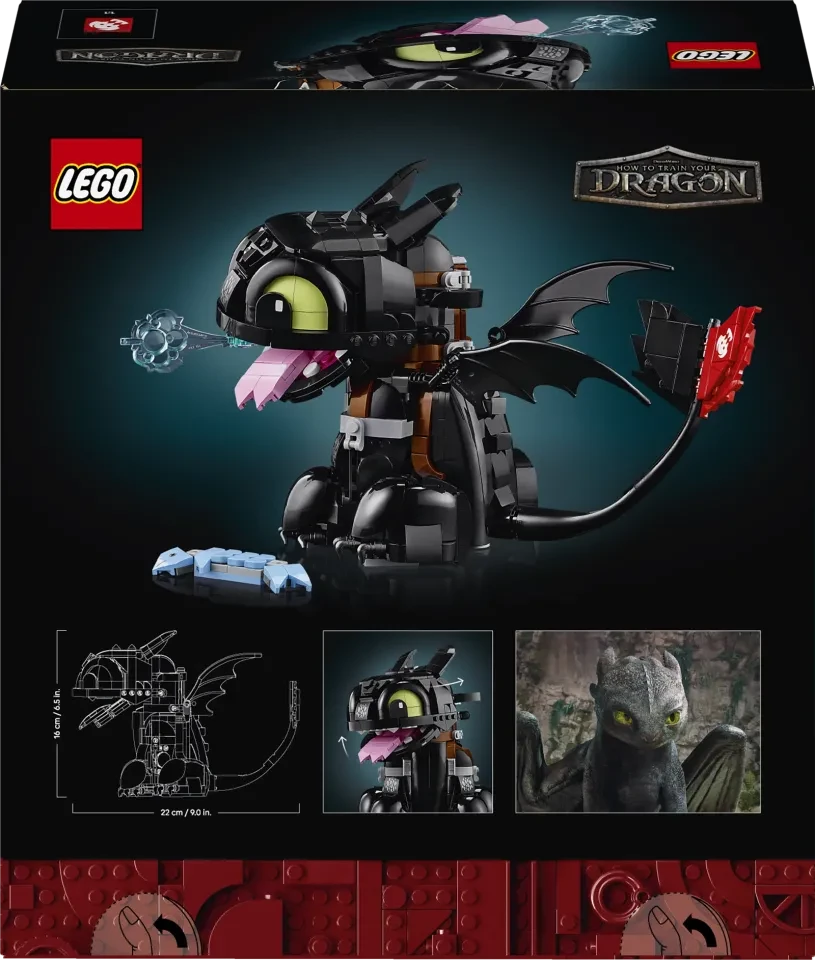 Composto da 784 pezzi, il set presenta dettagli intricati che danno vita a Toothless, tra cui una sella, una pinna caudale riparata e articolazioni che consentono di assumere pose versatili. Il modello include anche accessori come un pesce e attacchi per esplosioni di plasma, offrendo una gamma di opzioni di esposizione che catturano l'essenza dei film.
