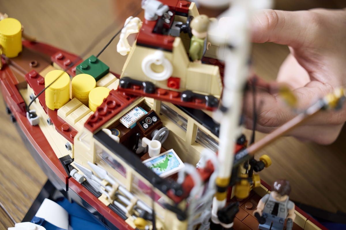 Parlando del processo creativo dietro il design del set, il fan designer Johnny Campbell rivela: "LO SQUALO è il mio film preferito di tutti i tempi e per questo motivo desideravo ricrearlo con i mattoncini. Costruire LEGO è sempre stata una parte fondamentale della mia vita, ma per catturare tutti i dettagli in modo minuzioso ho messo in pausa tantissime volte il film mentre lo guardavo, così da poterlo osservare attentamente e prendere appunti sui particolari. È semplicemente straordinario che il mio design sia diventato un set LEGO ufficiale. Non vedo l'ora di entrare in uno Store, guardare gli scaffali, vedere il set a cui ho contribuito e osservare qualcuno che lo acquista. È il sogno di ogni fan LEGO!".