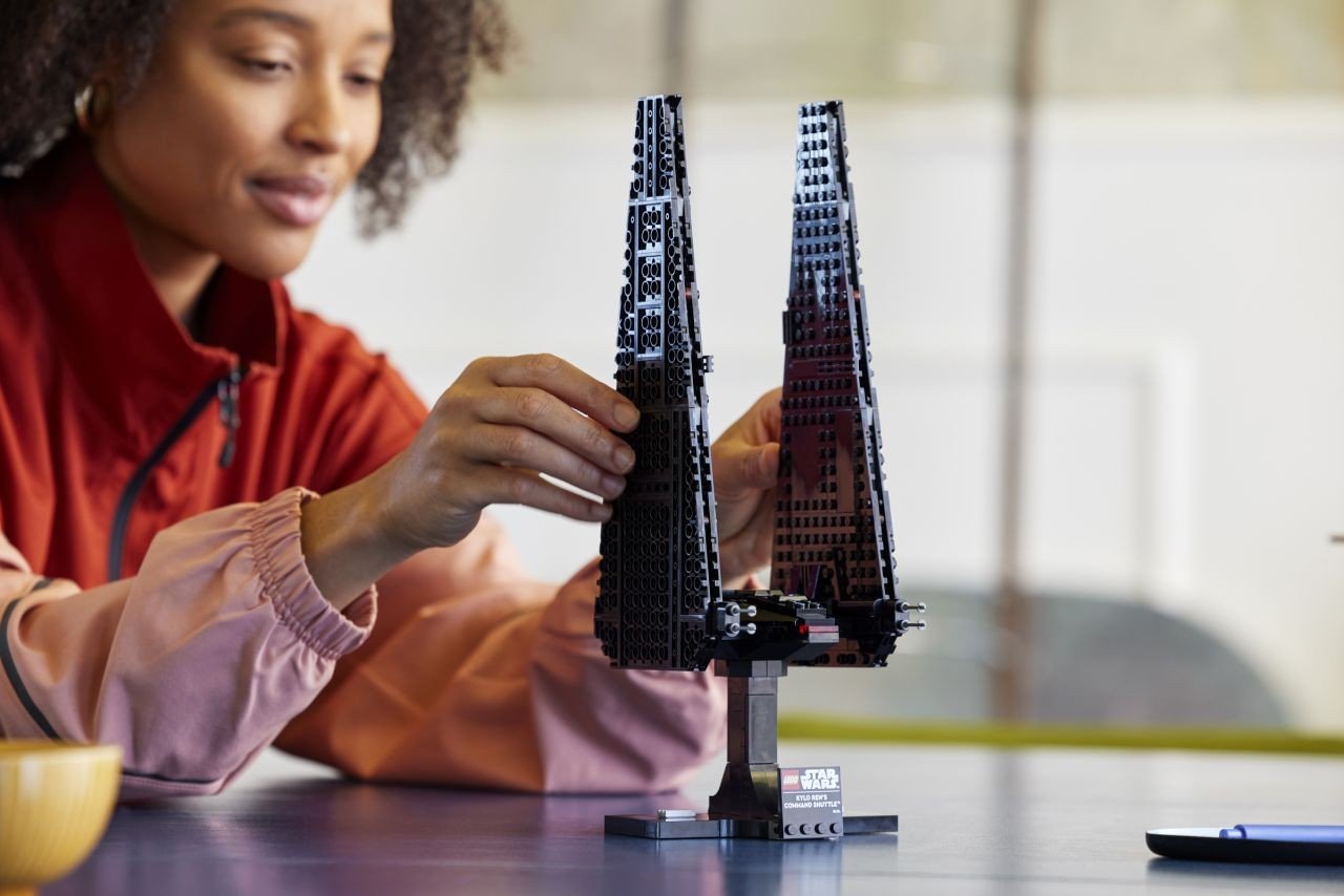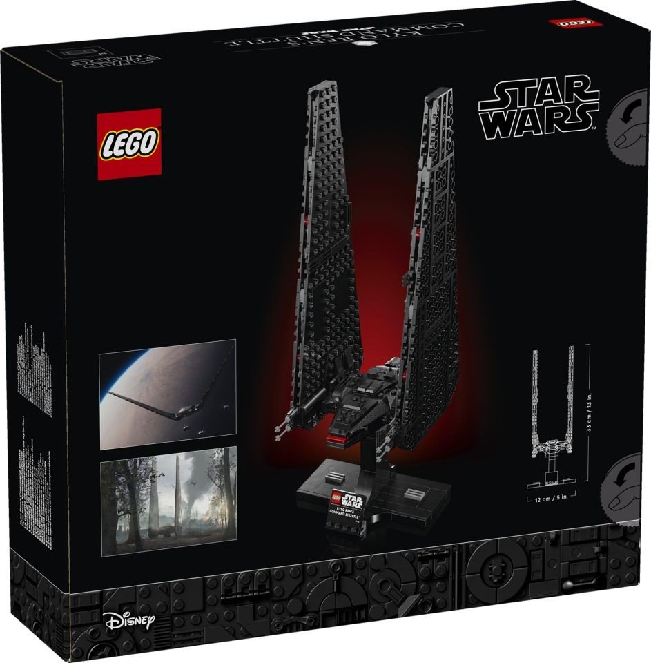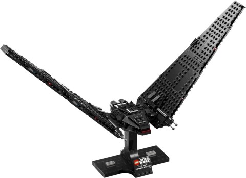 Il set LEGO Star Wars™ Shuttle di comando di Kylo Ren arriva giusto in tempo per il 10° anniversario di Star Wars: Il Risveglio della Forza ed è la nuova chicca della collezione di astronavi. Il set include un supporto e una targhetta che mostra nome e informazioni della navicella, rendendolo perfetto per l'esposizione.