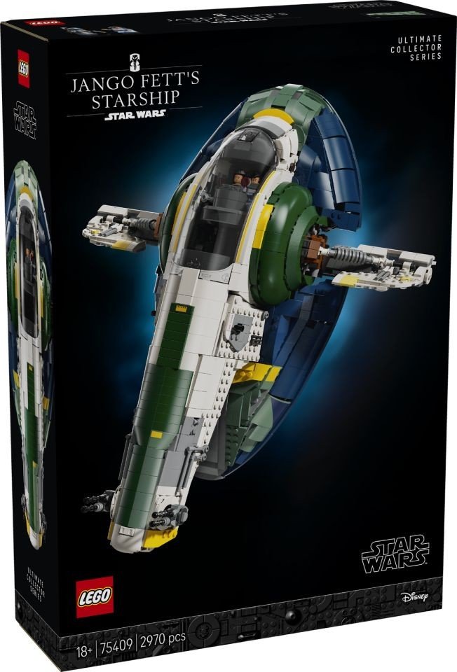 Grazie al set LEGO Star Wars™ Nave stellare di classe Firespray di Jango Fett, una novità della Ultimate Collector Series, i fan potranno rivivere le loro scene preferite sfrecciando tra campi di asteroidi e dando la caccia ai Maestri Jedi. Questo set da 2.970 pezzi include un interno fedele al film, un ingresso principale mobile, dei blaster regolabili e delle bombe sismiche. Il set può essere esposto sia in posizione di atterraggio che in volo ed è dotato di un supporto espositivo.