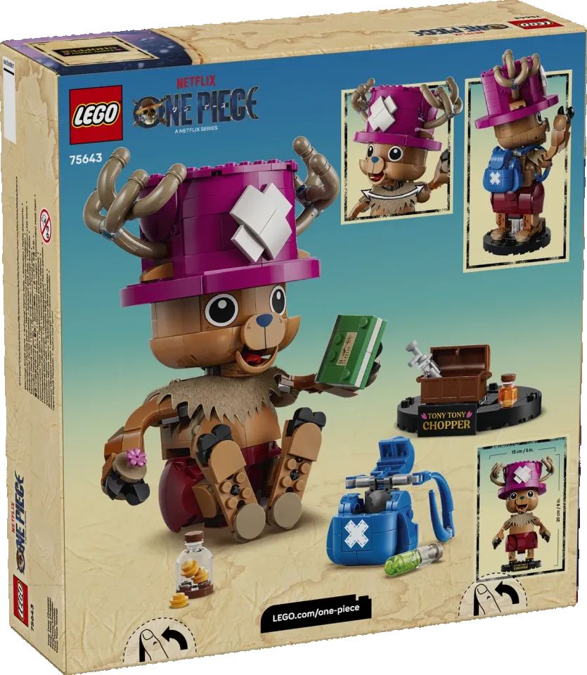 "Da grande fan della serie manga e dell'incredibile adattamento live-action di Netflix, è un vero onore continuare a lavorare per dare vita al mondo della serie ONE PIECE di Netflix sotto forma di mattoncini LEGO", ha dichiarato Yi-Chien Cheng, Associate Design Lead di LEGO ONE PIECE. "Tony Tony Chopper è sempre stato un personaggio di spicco per me e per molti altri fan, quindi è stato un vero piacere cercare di ricrearlo nel modo più fedele possibile utilizzando il sistema LEGO System in Play. Lavorare a stretto contatto con Oda Sensei per portare Chopper in LEGO ONE PIECE è stato uno dei momenti salienti della mia carriera."