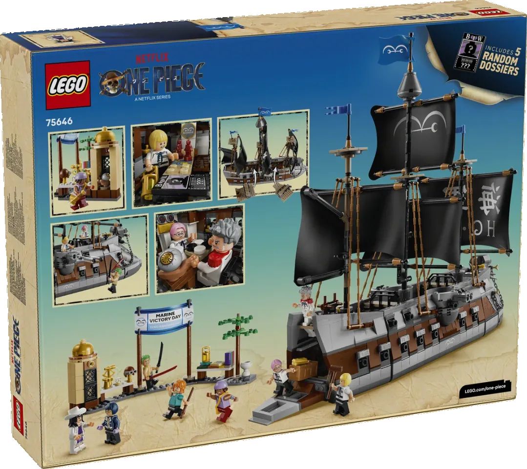 Con oltre 1.705 pezzi e otto minifigure LEGO, tra cui Zoro, Usop, Nami, il vice ammiraglio Garp e Ms All Sunday, questa è un'esperienza di costruzione complessa e coinvolgente che i fan adoreranno. Dotata di cinque vele e una bandiera della marina, la nave è davvero uno spettacolo da vedere, sia sui mari dell'East Blue che in qualsiasi collezione LEGO ONE PIECE.