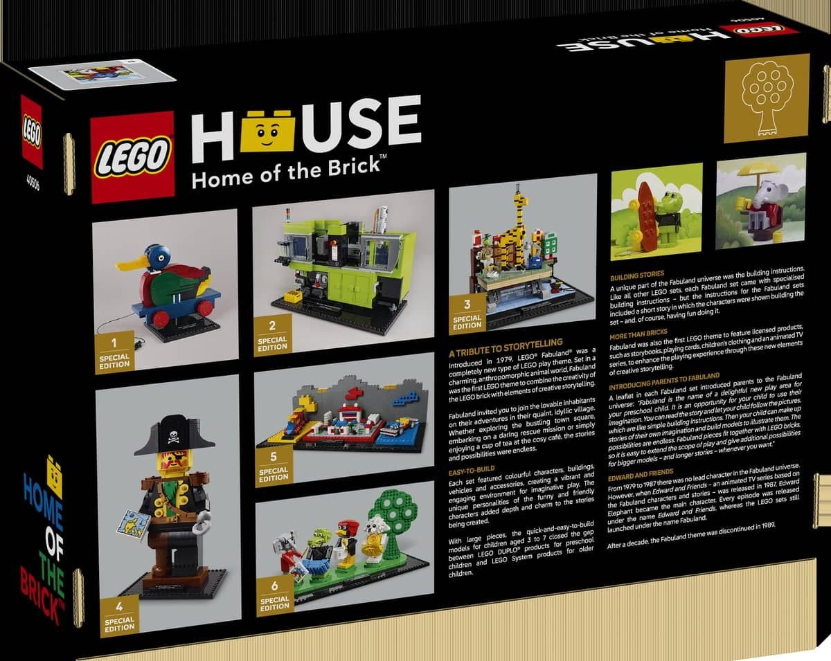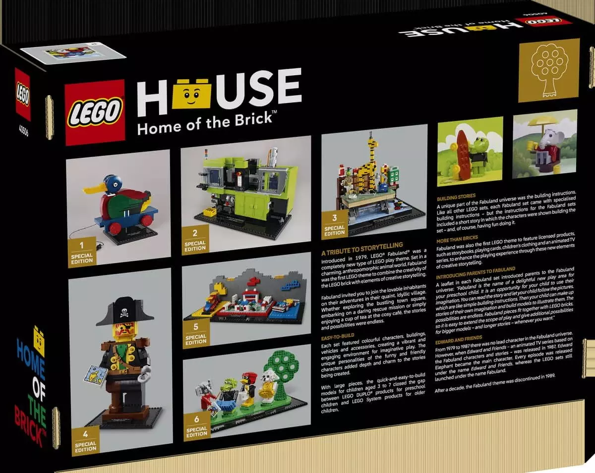 "Ogni anno trovo grande gioia nel creare il set esclusivo LEGO House insieme a Markus e a tutti i collaboratori della Idea House e della LEGO House", afferma il Master Builder Stuart Harris. "Fabuland occupa un posto molto sentimentale nel mio cuore, avendo trascorso molto tempo con la nostra collezione storica e l'archivio dei prodotti, sono sempre stato affascinato dalla serie. È possibile notare l'influenza che ha avuto sui temi narrativi delle future serie del Gruppo LEGO, tra cui LEGO® NINJAGO®, LEGO® Friends, LEGO® Bionicle® e altre ancora. Dalla reimmaginazione di ogni personaggio alla progettazione del libro di fiabe che accompagna il prodotto, è un onore assoluto portarli in vita ancora una volta sotto forma di questa sesta edizione della nostra serie LEGO House".